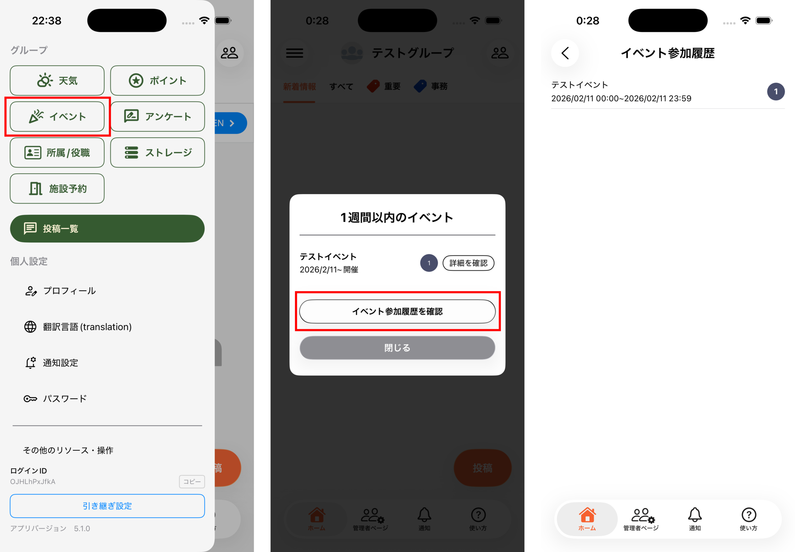 アドバンスプラン限定で搭載されているイベント機能でイベント参加履歴を確認できるようになりました。
